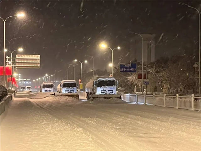 为防止道路结冰,影响市民清晨出行,道路清雪结束后,高区各级在重点路段开展融雪剂撒布,保障市民通行安全。同时集结各方力量,增加积雪外运,能有90余辆车,430余人进行积雪外运,确保随下随清、随清随运,全力保障道路畅通,守护群众出行安全。