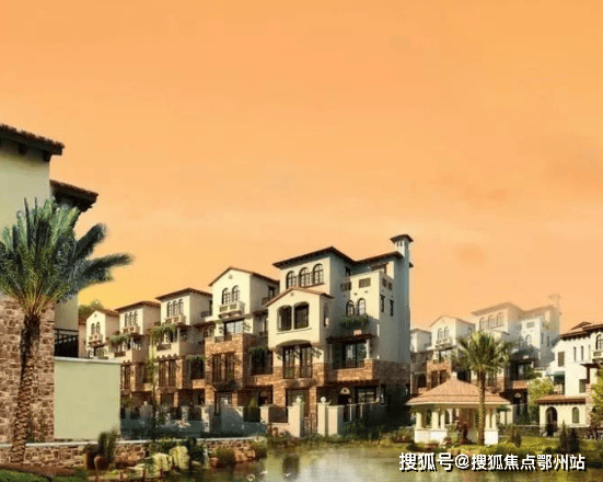 【同润•蓝美俊庭】采用南加州的建筑风格,外立面采用文化石和暖黄色涂料,搭配红色的筒瓦、烟囱、铁艺栏杆等建筑,尽现南加州原乡风情。