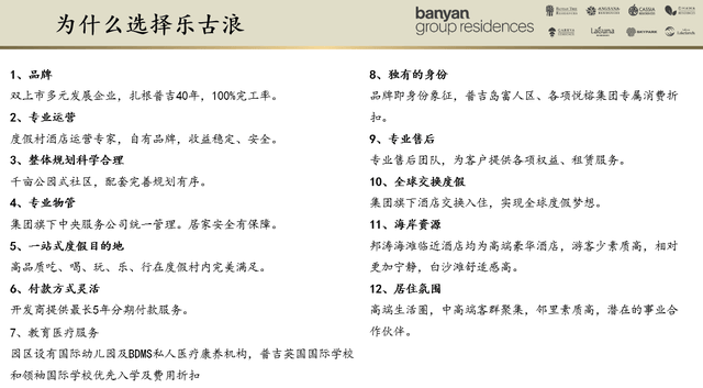 乐古浪度假村为全亚洲最顶级的度假体验目的地,整个园区内拥有住宅、酒店投资公寓、联排独栋别墅等多产品形态,与其它单一项目不同,乐古浪度假村能满足不同类型、不同国籍客户的购房需求,总价范围从人民币约180万-6000万不等。客户购房即可享受邦涛海滩静谧的环境以及整个社区完善的商业购物、娱乐、康养配套,安全性和舒适性在普吉岛独一无二。